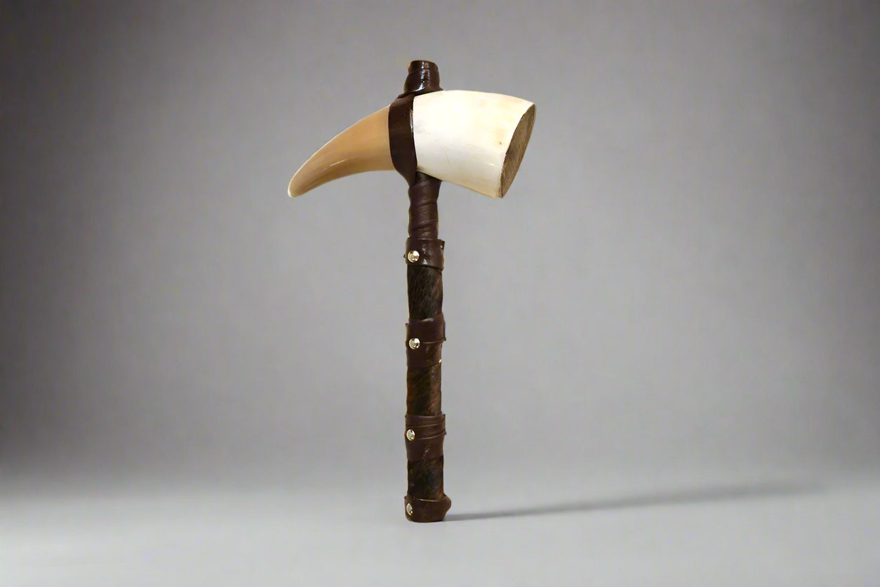 Meticulously handcrafted by our family-owned business with over 90 years of experience in horn craftsmanship, this unique horn rattle is made from GENUINE steer horn. The handle is securely wrapped in genuine cowhide and faux leather. Each piece is carefully selected for its distinctive appearance, ensuring no two rattles are exactly alike. Whether used for sound production, or as a display item, it’s a striking blend of form and function that embodies the spirit of the Wild West.