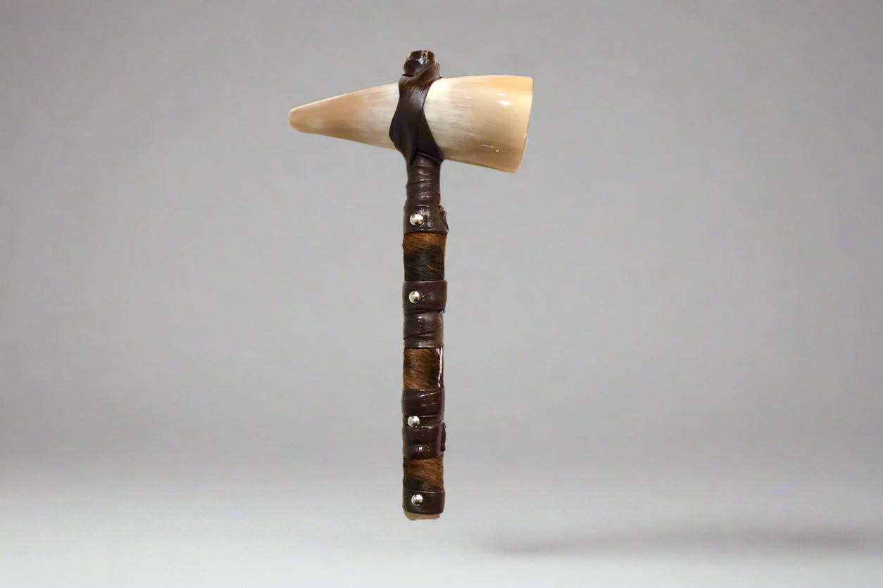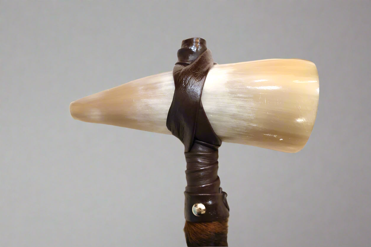 Meticulously handcrafted by our family-owned business with over 90 years of experience in horn craftsmanship, this unique horn rattle is made from GENUINE steer horn. The handle is securely wrapped in genuine cowhide and faux leather. Each piece is carefully selected for its distinctive appearance, ensuring no two rattles are exactly alike. Whether used for sound production, or as a display item, it’s a striking blend of form and function that embodies the spirit of the Wild West.