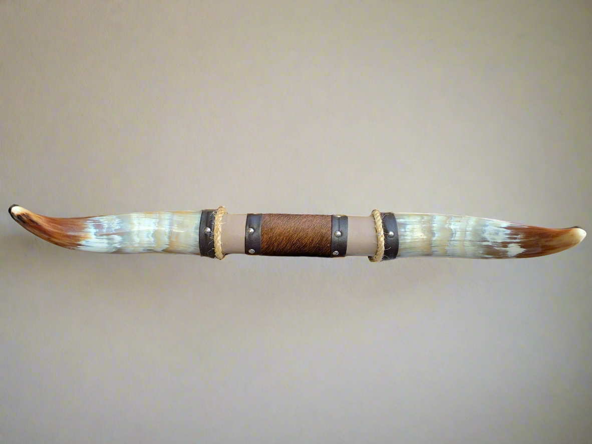 Celebrate the timeless spirit of the Wild West with our Mounted Steer Horns, meticulously handcrafted by our family-owned business with over 90 years of experience in horn craftsmanship. Each set of GENUINE steer horns is selected for its unique beauty and natural shape, expertly mounted on a wooden plaque and decorated with a center block made of genuine cowhide and faux leather.