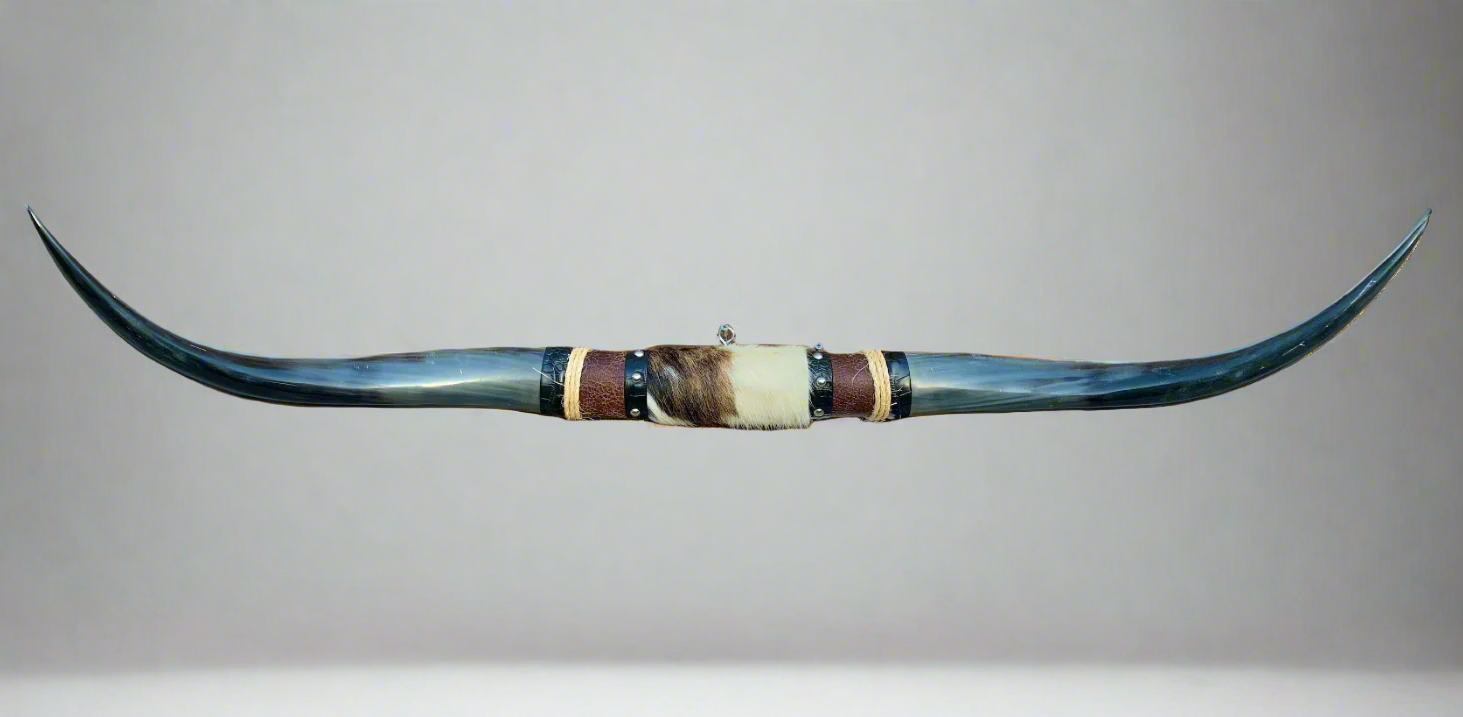 Celebrate the timeless spirit of the Wild West with our Mounted Steer Horns, meticulously handcrafted by our family-owned business with over 90 years of experience in horn craftsmanship. Each set of GENUINE steer horns is selected for its unique beauty and natural shape, expertly mounted on a wooden plaque and decorated with a center block made of genuine cowhide and faux leather.